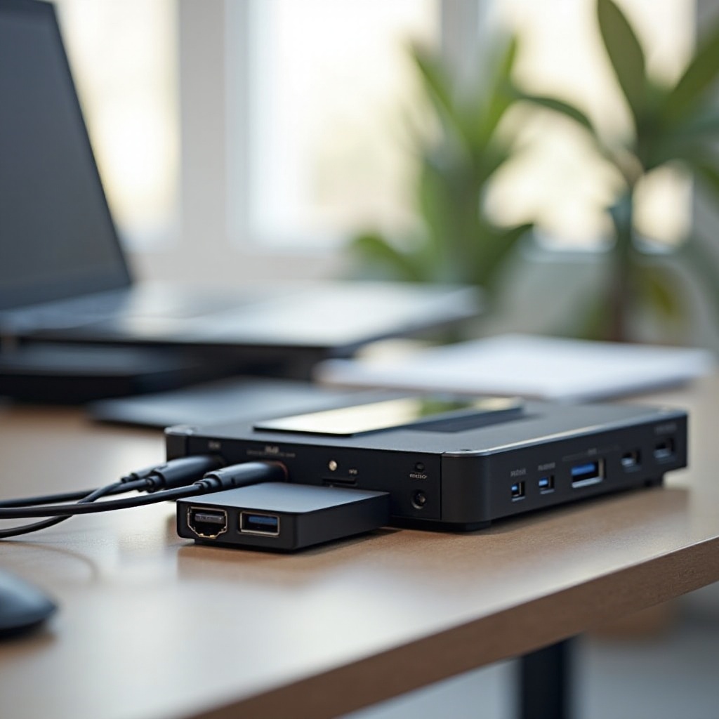 Avainominaisuudet: Priorisoi telakointiasemat, jotka tarjoavat runsaasti portteja, kuten USB-C, USB-A, HDMI, DisplayPort ja Ethernet. Modernissa ympäristössä Thunderbolt 4- tai USB-C-tuki on välttämätön nopeaan lataukseen ja tiedonsiirtoon.