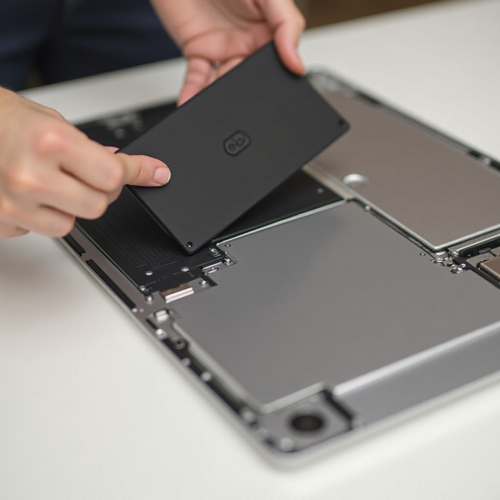 다음 단계는 MacBook을 효율적으로 작동시키기 위해 새 배터리를 설치하는 것입니다. 설치 시 정밀함이 필요한데, 이는 향후 운영 문제를 방지하는 데 도움이 됩니다.