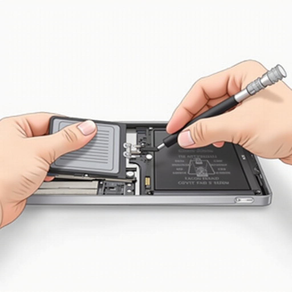 배터리를 조심스럽게 들어 올리고 제거합니다: 배터리의 풀 탭을 찾습니다. 탭을 사용하여 배터리를 조심스럽게 들어 올리고, 옆쪽을 잡아 찌르거나 손상되지 않도록 주의하면서 다룹니다.