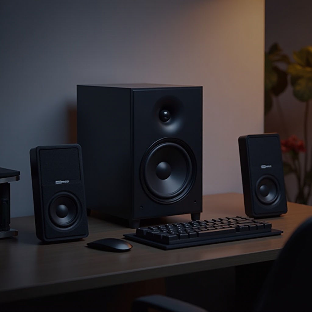 ลำโพง 2: [ยี่ห้อ & รุ่น]: การตั้งค่าที่กระชับนี้มีตัวเลือกการเชื่อมต่อที่หลากหลายและพอดีกับโต๊ะทำงานใด ๆ ได้อย่างลงตัว โดยไม่ลดทอนคุณภาพเสียง